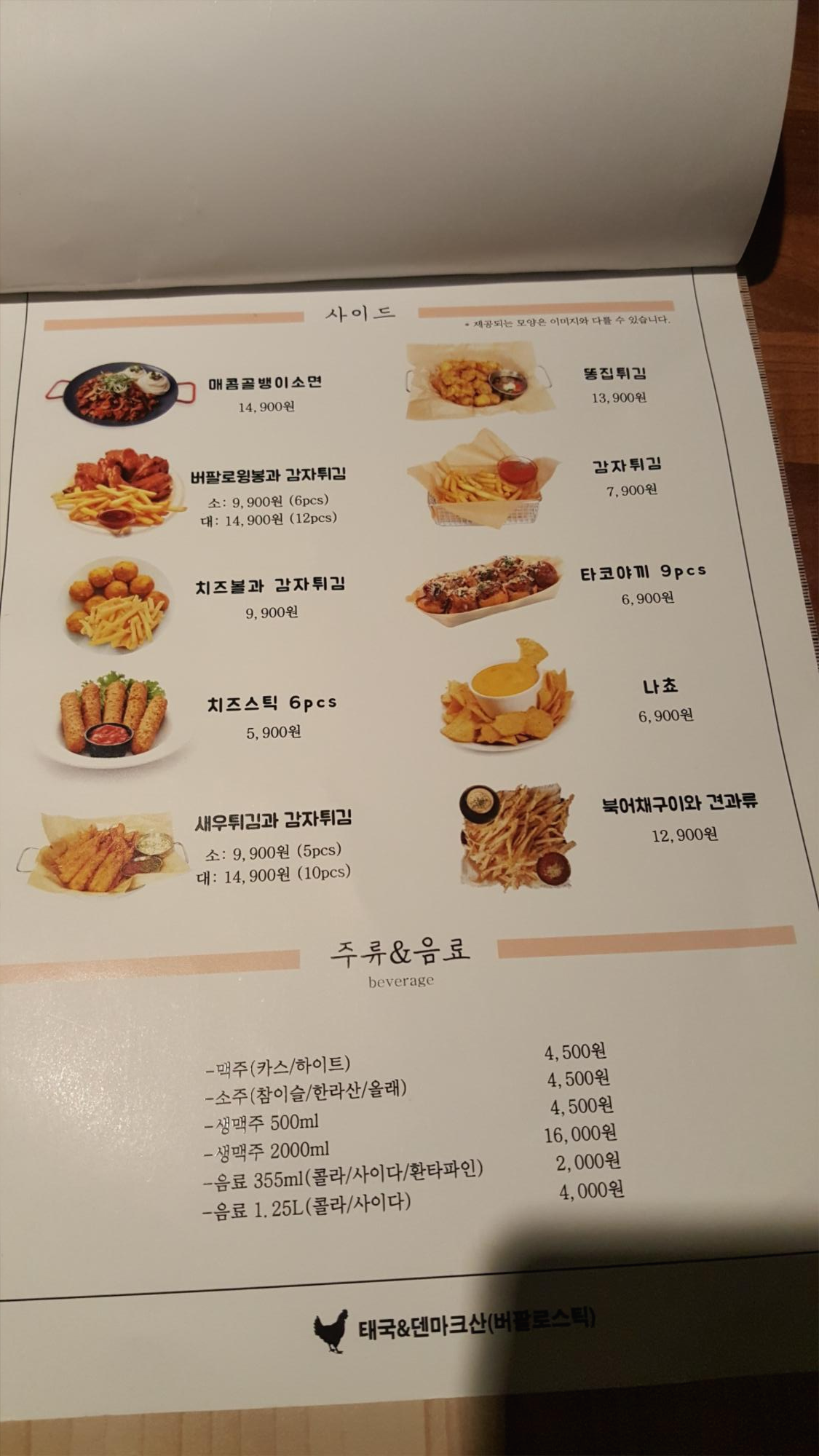 메뉴 및 가격표 입니다