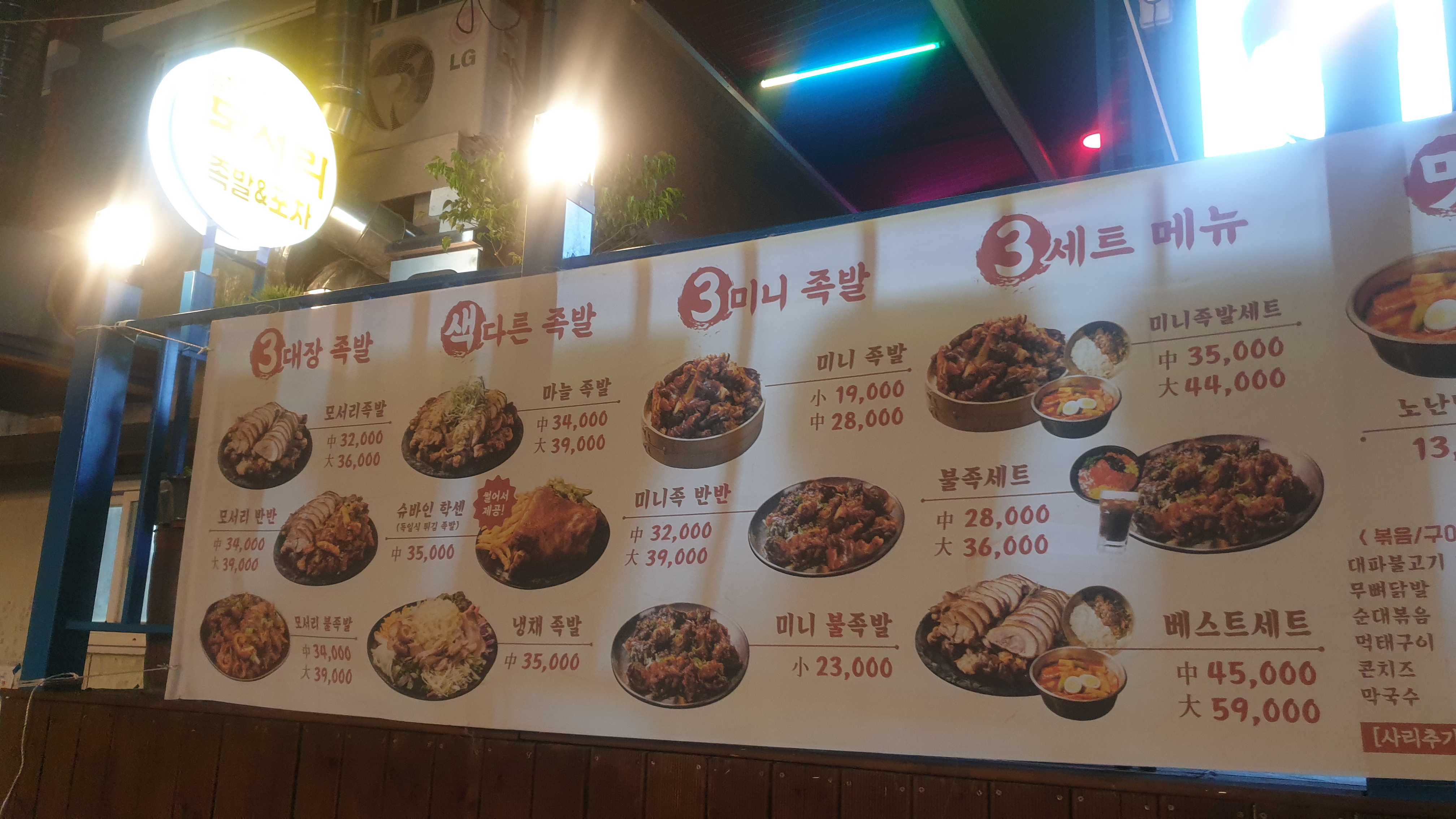 제주도 노형동에 위치한 족발 전문점 추천집 - 족발 야시장 -