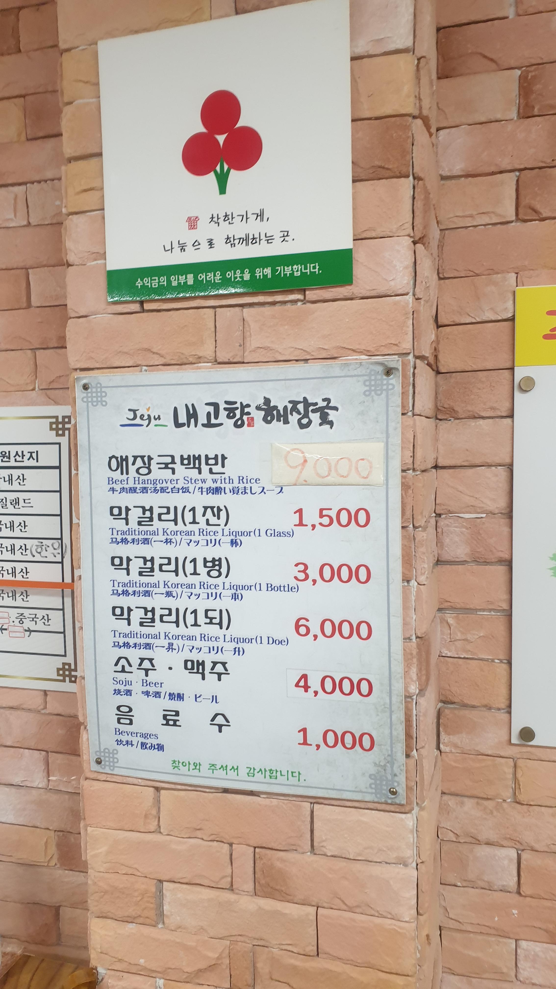 제주도 성산에 위치한 해장국 전문점 입니다 이집 몇번 가려고 했었는데 갈때 마다 영업을 하지않아 영업을 하지 않나 싶었는데 하고 있더군요 이날은 다행이 먹어볼수 있었던 가격 및 메뉴판��