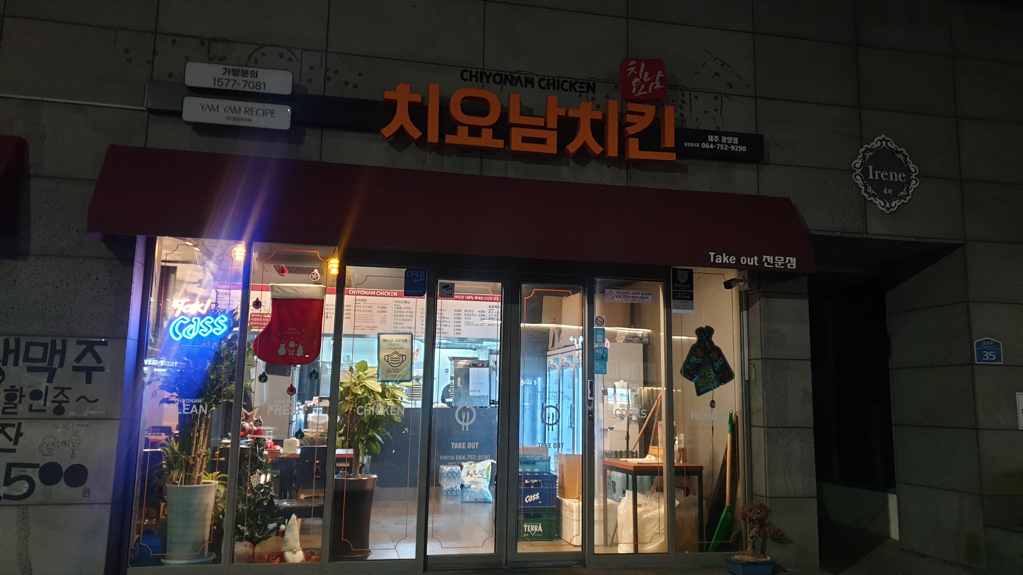 제주도 연동에 위치한 숯불 양념 치킨 전문점 입니다 제주도에서 꾀나 오래되고 유명한 곳이라고 하더군요 거진 새벽에 갔었는데 배달 업무가 끝나서 인지 청소를 하고 계시더군요 포장을 부탁