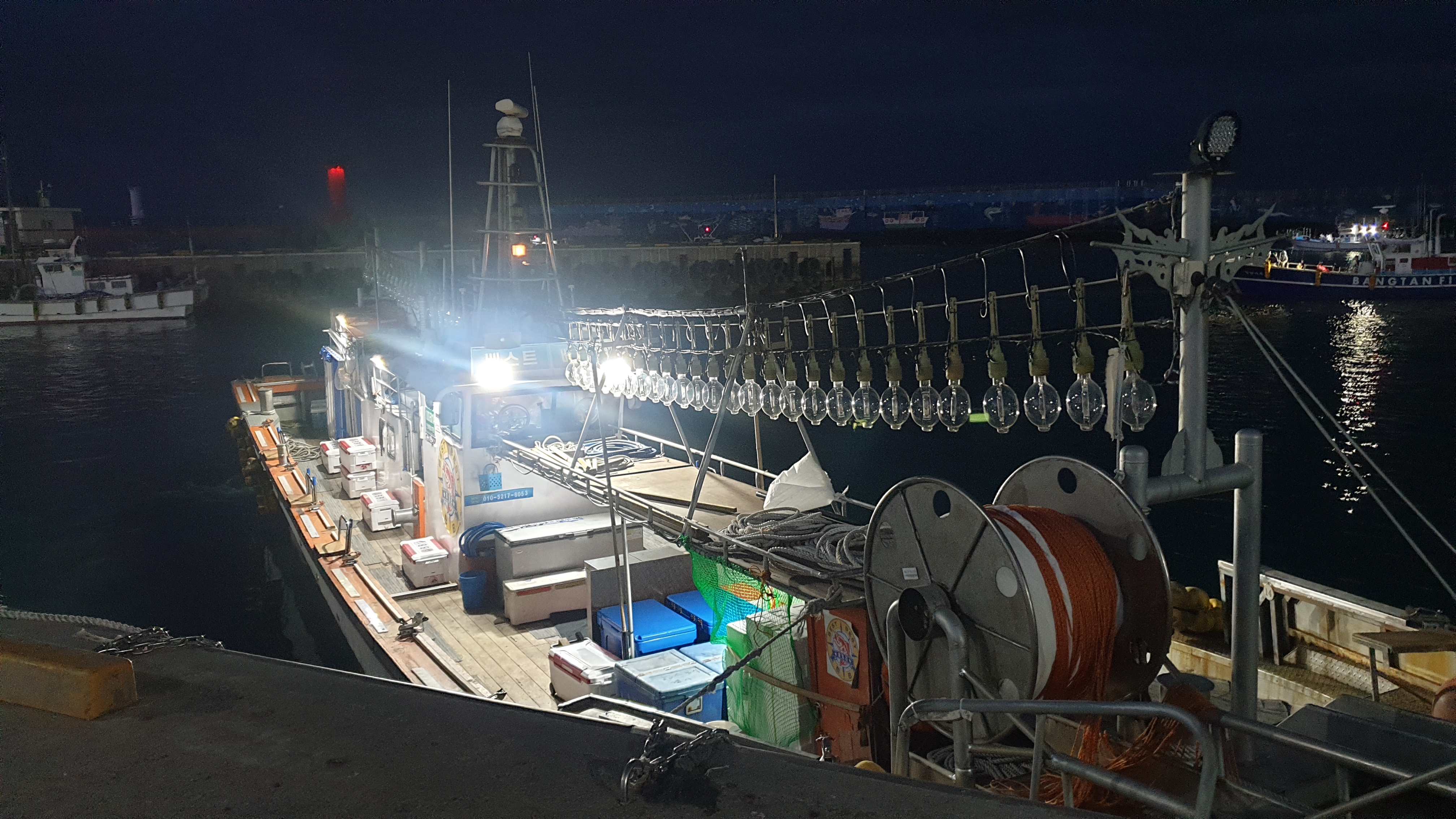 한치 야간 낚시 출조비 1인 7만원 낚시 시간 기본 오후 7시부터 밤 12시까지 날에 따라 더 오래 할수도 있습니다 참고하세요 제가갔던 이날역시 한치가 너무 안나서 선장님이 조금더 낚시 하게 해