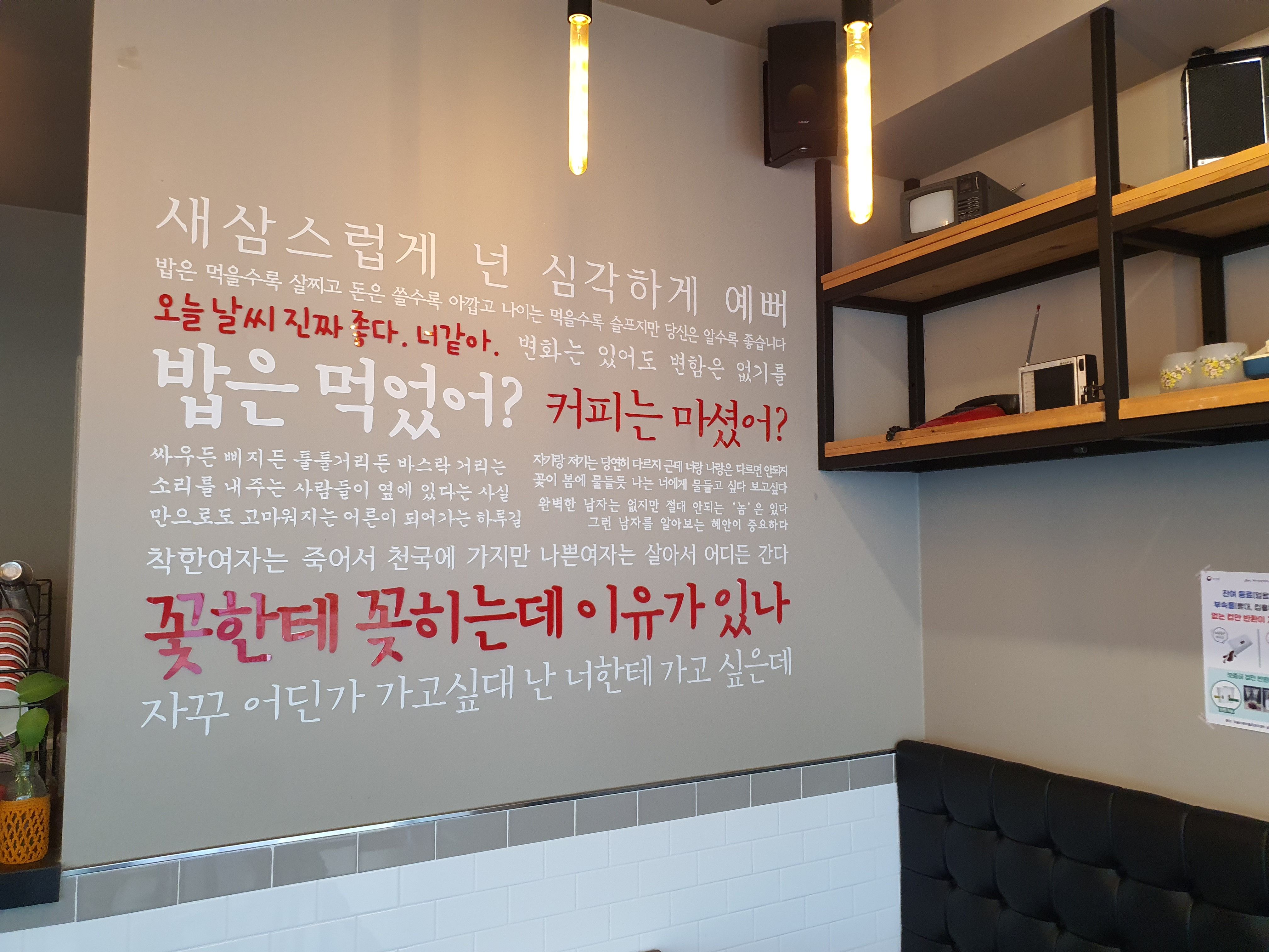 커피 전문점 안에 적혀 있는